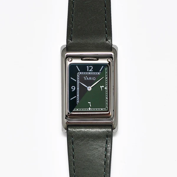 ساعة فاريو فيرسا ذات الوجهين المختلفين إصدار الارقام العربية باللون الاخضر الملكي. وتوفر لك تصميمين في ساعة واحدة مناسبين لللأوقات الرسمية والغير رسمية.
